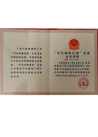 安徽省守合同重信用企業(yè)