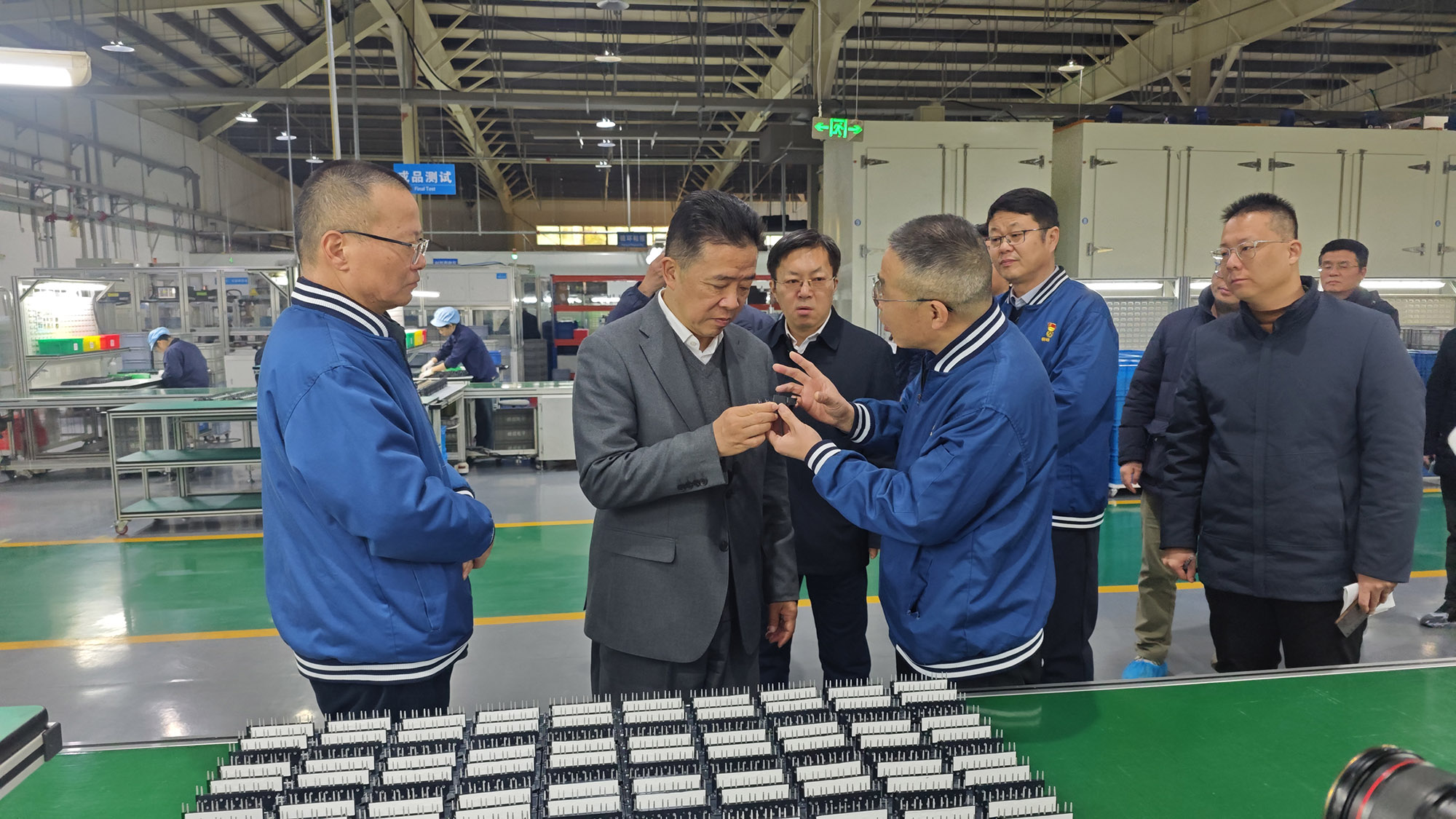 峰成電子公司專業(yè)生產(chǎn)新能源汽車用電容器。楊宏星一行前往生產(chǎn)車間認(rèn)真了解產(chǎn)品性能、市場(chǎng)拓展、發(fā)展前景等情況,對(duì)公司搶抓新能源產(chǎn)業(yè)機(jī)遇,加快新品研發(fā)和市場(chǎng)開拓,實(shí)現(xiàn)產(chǎn)銷規(guī)模持續(xù)快速增長(zhǎng)予以高度認(rèn)可。